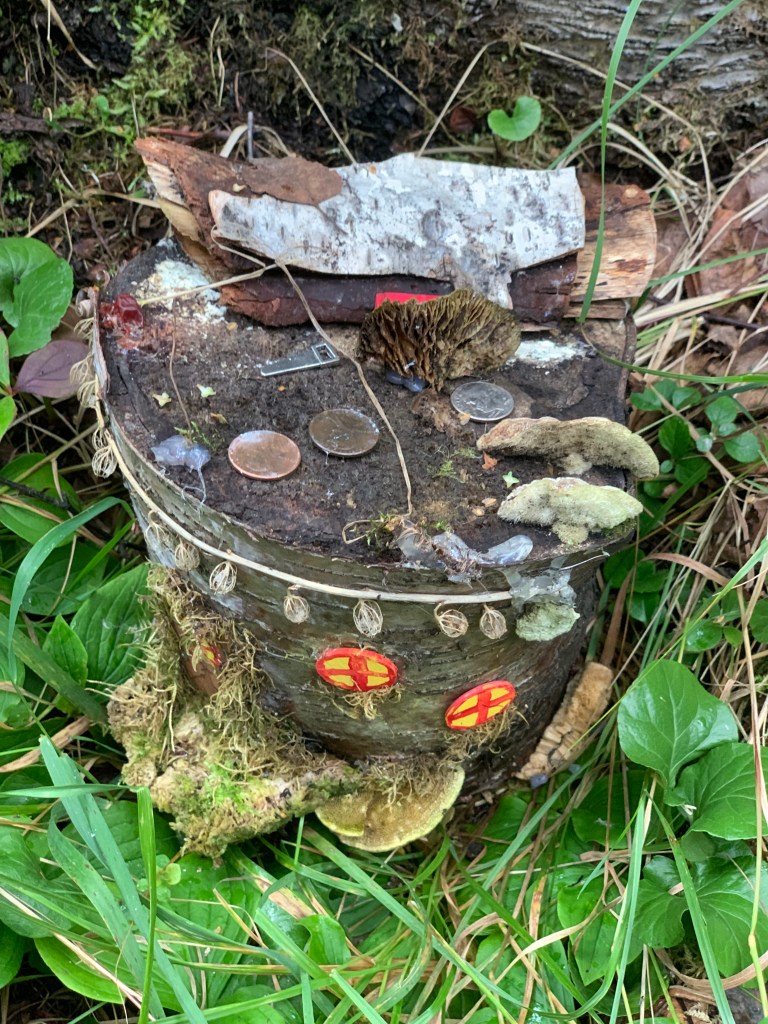 The fairy path ended at a fallen tree that blocked the path, creating a cul-de-sac for the little neighborhood. Or maybe more development will come and turn the road into a town. Maybe there will be fairy commerce and industry, but for now it’s a simple offering to the fairies and a lovely place to visit on a Saturday afternoon.